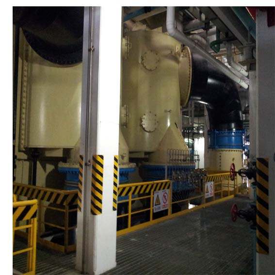 三、電動收球網(wǎng)  該型號的收球網(wǎng)由筒體、柵網(wǎng)板、電動推桿、螺旋輸送機構(gòu)等部件組成,收球時,柵網(wǎng)板呈“V”型,膠球雜物及水垢等沿柵網(wǎng)板表面下滑到收球網(wǎng)底部,并被螺旋機構(gòu)強制送到膠球引出管,由膠球泵抽吸至裝球室進行下一輪清洗。不收球時,利用電動推桿,曲柄機構(gòu)使柵網(wǎng)板呈“A”型,此時既可以減小水阻,又可以利用水流對柵網(wǎng)板進行反洗,使遺留在柵網(wǎng)板上的雜物被水流沖去,保證收球效率。 收球網(wǎng)工作原理:新型收球網(wǎng)是在相應的管道中設置了一個A型柵格網(wǎng),上部為進水端,網(wǎng)板將整個管道截面全部遮擋,收球工作由此開始。收球網(wǎng)的網(wǎng)板、主軸、卡軸塊及緊固件等所有過流部件均可采用優(yōu)質(zhì)不銹鋼。A型柵格網(wǎng)的兩片網(wǎng)板由兩根轉(zhuǎn)軸轉(zhuǎn)動,在非運行工況時網(wǎng)板可被旋轉(zhuǎn)到一定角度,形成與水流平行的H型結(jié)構(gòu)。H型結(jié)構(gòu)使水流對網(wǎng)板進行反沖洗,可清除網(wǎng)上雜物及減少水阻,并解決老式收球網(wǎng)積球卡球的問題,使收球率達94%以上。在投球運行時將網(wǎng)板轉(zhuǎn)回到原來的A型結(jié)構(gòu)位置上。主要型式有手動(小管徑)和電動(大管徑)兩種供選用。即循環(huán)水管徑小于DN700的可選用手動單板型收球網(wǎng),當循環(huán)水管徑大于DN700可雙板分流型收球網(wǎng)。 四、電動裝球室  裝球室的特點是設計有足夠的容積,以保證海綿膠球在裝球室內(nèi)有回旋的余地。其中膠球斗、切換閥,單向閥均采用耐腐蝕的不銹鋼材質(zhì)。由于在裝球室中設計有獨特的單向閥裝置,從而取消了原來的電動門。進而簡化了膠球自動清洗系統(tǒng)及運行操作;便于實現(xiàn)自動控制,提高了運行的可靠性;提高了系統(tǒng)的收球率。 在膠球自動清洗系統(tǒng)投入運行前,應將裝球室的切換閥放在收球位置,在膠球斗內(nèi)添加足夠數(shù)量的海綿膠球( 裝球量為凝汽器單程銅管數(shù)的10%),利用裝球室的出口球閥和排氣閥將裝球室充滿水。然后啟動膠球循環(huán)泵,通過觀察窗,看膠球在裝球室內(nèi)回旋情況,如發(fā)現(xiàn)室內(nèi)在有氣泡存在,可繼續(xù)進行排氣。一切正常后,將切換閥手柄緩慢轉(zhuǎn)到運行位置,海綿膠球通過切換閥投入到系統(tǒng)中,進入工作狀態(tài)。