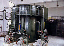中央空調(diào)冷凝器、蒸發(fā)器清洗,傳統(tǒng)辦法是人工清洗,通過化學(xué)水處理與機(jī)械清理等辦法,不但成本投入之大,而且會(huì)產(chǎn)生化學(xué)腐蝕,不能徹底解決生物沾泥問題。人工清洗不能實(shí)現(xiàn)對(duì)冷凝器連續(xù)在線的清洗,在清洗完后,只要機(jī)器連續(xù)運(yùn)行24小時(shí),冷凝器就會(huì)重新被污染,效率再度降低,在清洗的間隔內(nèi),機(jī)組已經(jīng)額外消耗了大量的能源。因此傳統(tǒng)辦法無法徹底根治冷凝器、蒸發(fā)器的腐蝕、結(jié)垢問題,同樣存在熱阻率增大,額外耗能等弊端。  我公司的中央空調(diào)冷凝器膠球自動(dòng)在線清洗裝置采用純物理方法,利用系統(tǒng)自帶水泵加壓,將清洗膠球從裝球室發(fā)送到冷凝器、蒸發(fā)器進(jìn)水管中,依靠水流產(chǎn)生的沖刷力和膠球與換熱管壁產(chǎn)生的摩擦力擦洗掉換熱管內(nèi)壁的水垢、污垢以及微生物膜。在冷卻水出口端通過收球網(wǎng)利用水流力學(xué)原理和膠球泵自吸力將球回收裝球室,從而完成一次清洗循環(huán)?刂破骺稍O(shè)置清洗次數(shù)或清洗時(shí)間,以及隨空調(diào)主機(jī)的開啟自動(dòng)運(yùn)行功能,實(shí)現(xiàn)全自動(dòng)在線清洗。始終保持冷凝管內(nèi)壁潔凈,從而提高了冷凝器的熱交換效率,降低能耗,提高能效,節(jié)省能源。 |