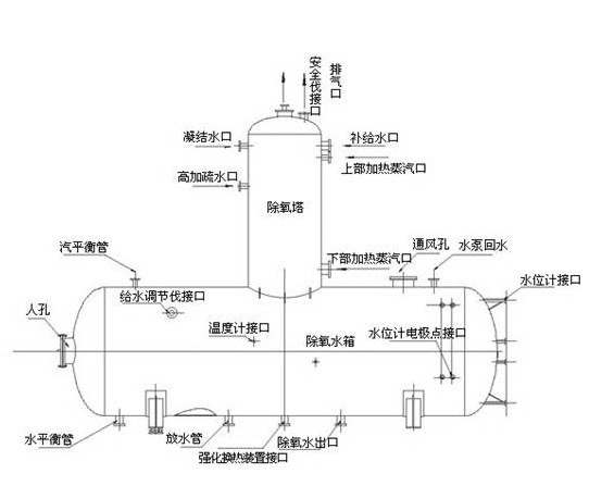 真空除氧器,是一種使水在真空下低溫沸騰,脫除水中含有的氧氣、氮?dú)、二氧化碳等氣體的設(shè)備,由除氧水箱(除氧塔)和真空機(jī)組兩大部分組成, 除氧水箱可以高位或低位布置,真空泵機(jī)組可采用以蒸汽作動(dòng)力的蒸汽噴射泵,或以循環(huán)水為工作介質(zhì)的水噴射泵。