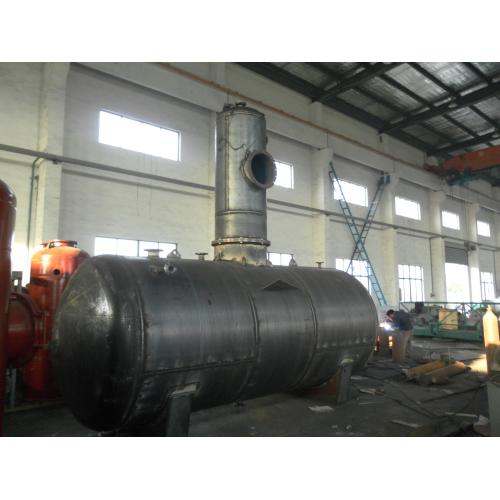 旋膜式除氧器的結(jié)構(gòu)是由除氧頭和水箱組成。我們重點(diǎn)介紹除氧頭的結(jié)構(gòu)原理。 除氧頭的結(jié)構(gòu)由外殼,旋膜器組,水篦子,液汽網(wǎng),蒸汽分配盤五大部分組成。 1、外殼:是由筒身和沖壓橢圓形封頭焊制成。低壓150T/H以下中、小除氧器配有一對(duì)法蘭聯(lián)接上下部,供裝配和檢修用。 2、起膜器組:由水室、汽室、起膜管、凝結(jié)水接管、補(bǔ)充水接管和一次進(jìn)汽接管組成。起膜管、下水管材料均由不銹鋼制造,常年運(yùn)行無需檢修。 3、淋水篦子:經(jīng)起膜段粗除氧的給水及由疏水管引進(jìn)的疏水在這里混合進(jìn)行二次分配,呈均勻淋雨?duì)盥涞窖b到其下的液汽網(wǎng)上。水篦子可根據(jù)水溫具體情況作增減,水篦子常年運(yùn)行無需檢修。 4、液汽網(wǎng):是由相互間隔的扁鋼帶及一個(gè)圓筒體,內(nèi)裝一定高度特制的不銹鋼扁絲網(wǎng)及不銹鋼板組成,給水在這里與二次蒸汽充分接觸,加熱到飽和溫度并進(jìn)行深度除氧,以保證除氧水中含量:低壓大汽式除氧器低于10μg/L,高壓除氧器低于5μg/L。 5、蒸汽分配盤:按一定比例成規(guī)則均分型制成,使主加熱蒸汽呈現(xiàn)均分狀態(tài)其在無節(jié)流工況下上升加熱軟化水,來保證加熱質(zhì)量,達(dá)到飽和溫度下工作除氧。 6、汽水分離器:由不銹鋼填料組成內(nèi)網(wǎng),外殼設(shè)計(jì)為通氣型結(jié)構(gòu),能有效的將排氧時(shí)的汽帶水分離回流,是排汽不帶水的必不可少部件。 7、水箱:是由筒身和沖壓橢圓形封頭焊制成,內(nèi)部設(shè)置加強(qiáng)圈,底座固定在預(yù)制的工作臺(tái)上,一端固定,另一端為安裝膨脹滾體裝置。水箱上設(shè)有檢修人孔、安全閥接管口、排水口、再沸騰管口、水封筒口、水位計(jì)接口、壓力表口、溫度表口、用水口等。