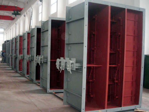 三、冷熱風(fēng)隔絕門(mén)根據(jù)不同的規(guī)格型號(hào)、風(fēng)壓大小、工作溫度,選擇合理結(jié)構(gòu)形式。 1.圓形隔絕開(kāi)啟關(guān)閉門(mén)可在Φ60至2500通徑尺寸范圍內(nèi)任意選擇。 2.矩形隔絕開(kāi)啟關(guān)閉門(mén)可在200*400至4000*6000通徑范圍內(nèi)選擇。 3.根據(jù)風(fēng)門(mén)現(xiàn)場(chǎng)不同的工作環(huán)境,選用不同的材料進(jìn)行設(shè)計(jì)、制作。