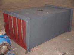 YF系列通風管道風機消聲器及鼓引風機消聲器適用于各類離心式、軸流式、羅茨風機及空壓機。  2、阻抗聲流型風機消聲器(風機消聲器)用途及產品特點:
