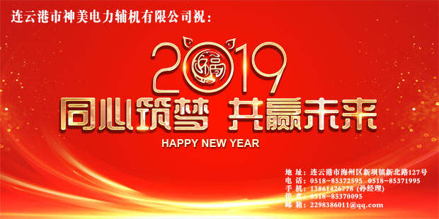喜悅伴著汗水,成功伴著艱辛,遺憾激勵奮斗,我們不知不覺地走進了2019年,這是神美公司成立后的第25個年頭了,連云港市神美電力輔機有限公司總經(jīng)理攜全體員工,謝謝一年來所有對我公司的大力支持和幫助的用戶!愿我們在新的一年里團結開拓,把我們的工作做得更好!籍新春佳節(jié)之即,祝大家新年愉快,身體健康,萬事如意。加薪買房購小車,娶妻生子成家室!接財神。